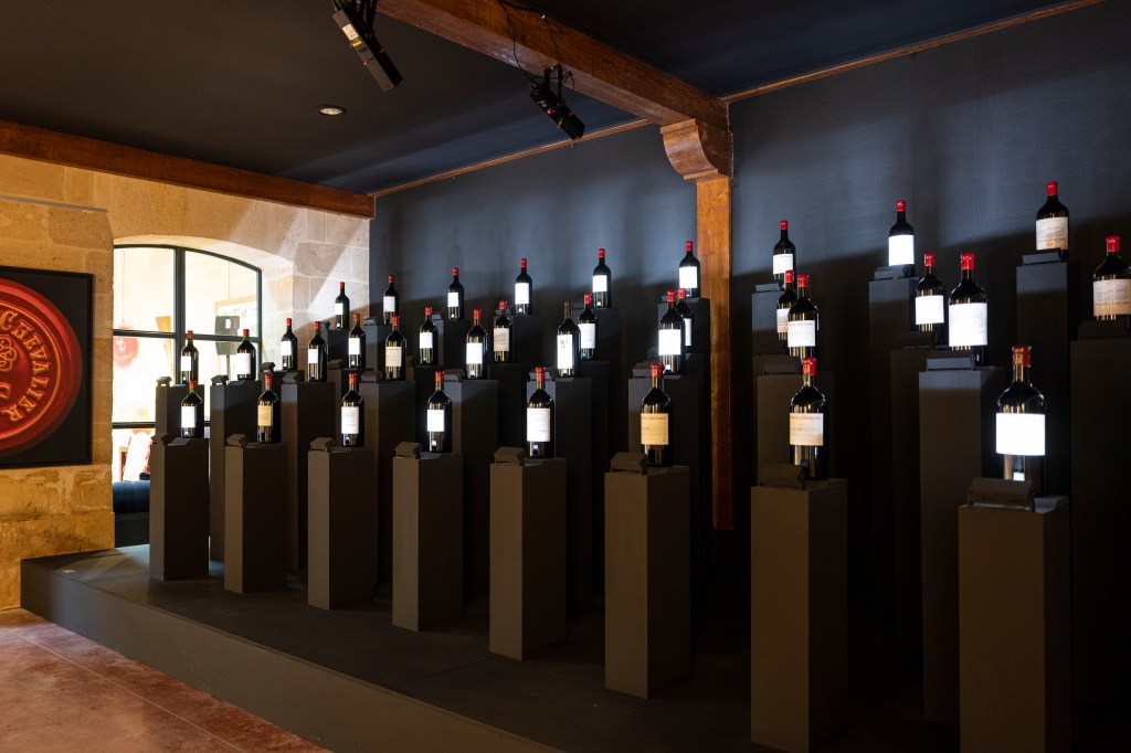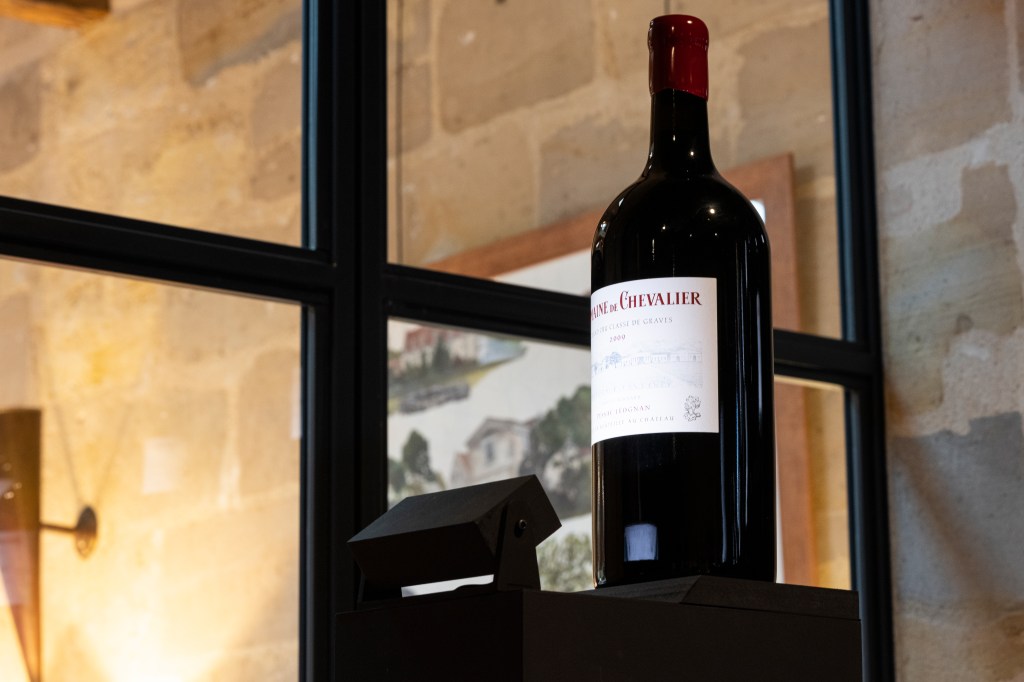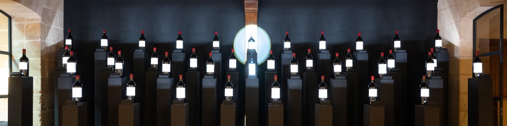 Nicolas Husson, architect and designer, designed the experience. The display of the 40 pedestals on wich the double magnums are lighted puts a special emphasis on the 1983 and 2022 millesims. Playing the emblematic song « C’est si bon » by Louis Armstrong, the installation lighten up the 40 bottles in rythm with the music, creating an orchestral light and sound piece.